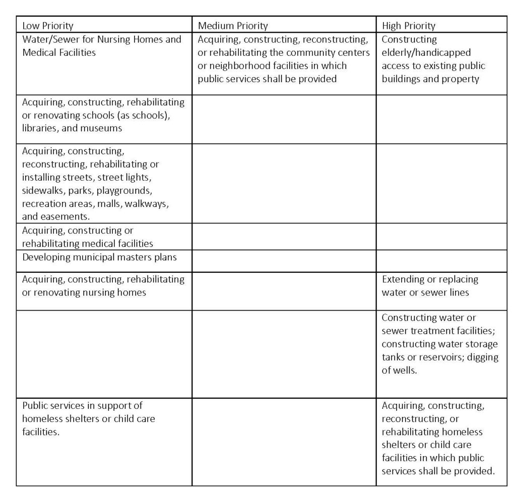 Home → PROGRAMS → Community Development Block Grant → Application → Evaluation → Low Priority Chart